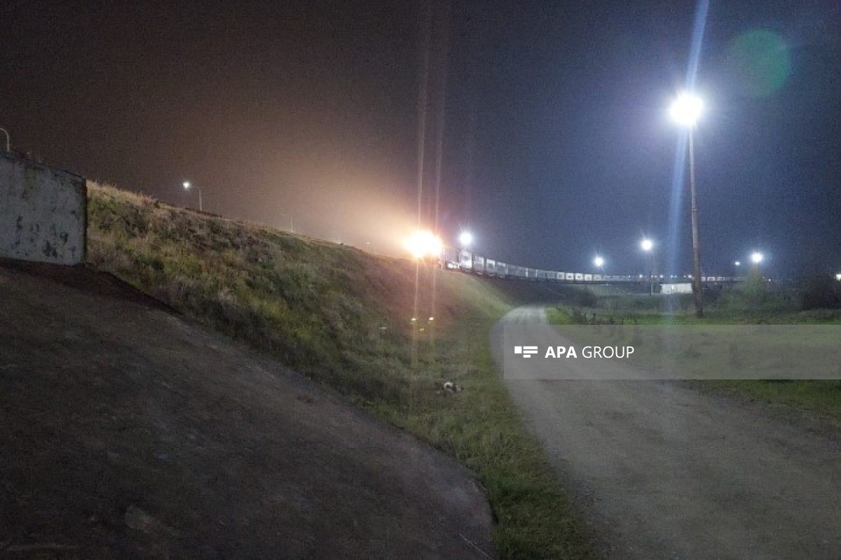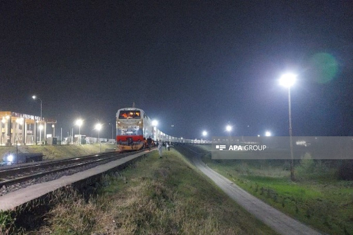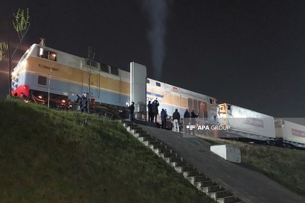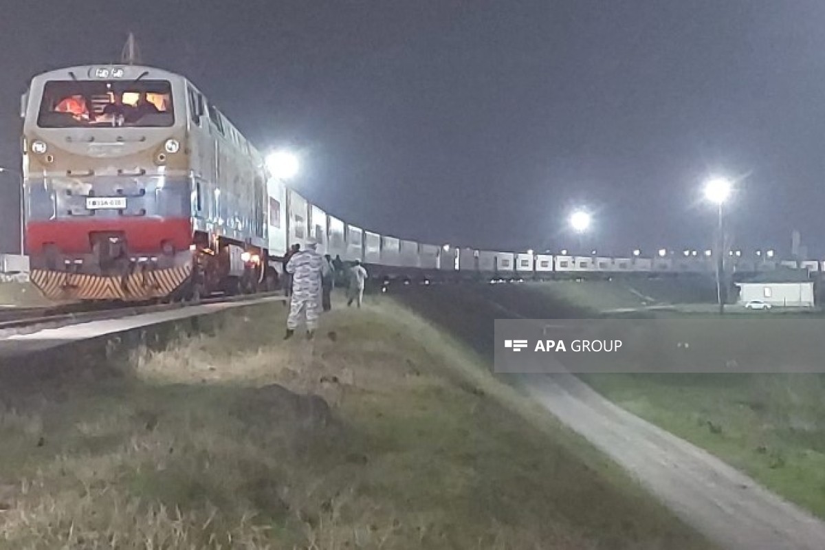 Грузовой поезд с гуманитарной помощью из России для Ирана, проходящий через территорию Азербайджана, прибыл на станцию Астара.
