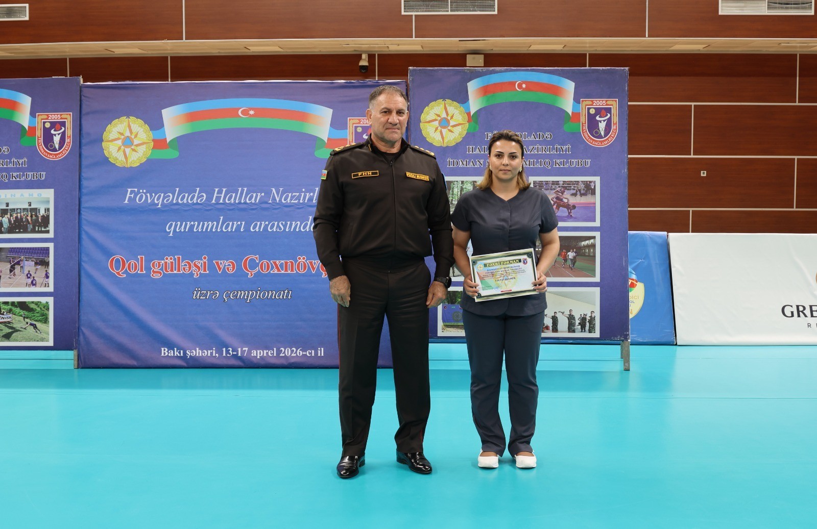 Церемония награждения началась с исполнения Государственного гимна Азербайджана. В своем выступлении начальник спортивно-оздоровительного клуба, полковник Физули Мусаев отметил достижения сотрудников МЧС на республиканских и международных соревнованиях, а также поздравил победителей турнира.
