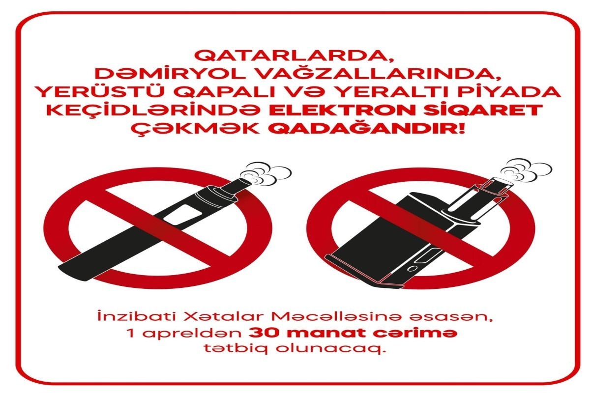 В соответствии с Кодексом об административных правонарушениях, за использование электронных сигарет в поездах, на станциях, а также в надземных закрытых и подземных пешеходных переходах будет налагаться штраф в размере 30 манатов.